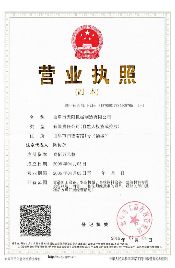 曲阜市天陽機械制造有限公司坐落于“東方圣城”——孔子故里曲阜市,是一家從事糧食食品加工機械,飼料機械的企業。公司秉承“顧客至上,銳意進取”的經營理念,堅持以客戶為中心的原則為廣大客戶提供優良的服務,主要產品有粉條機、淀粉機、玉米面條機、米線機、涼粉機、釀酒機、碾米機、顆粒飼料機、側草機等,歡迎回顧!公司全體員工將竭誠為您服務。